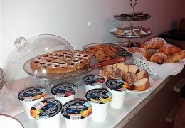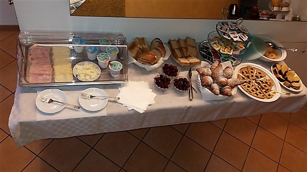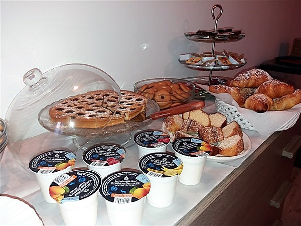 Torte, Frutta, Croissant, Cereali, Yogurt, Marmellate, Nutella, Succhi di Frutta, Acqua, Caffè ,