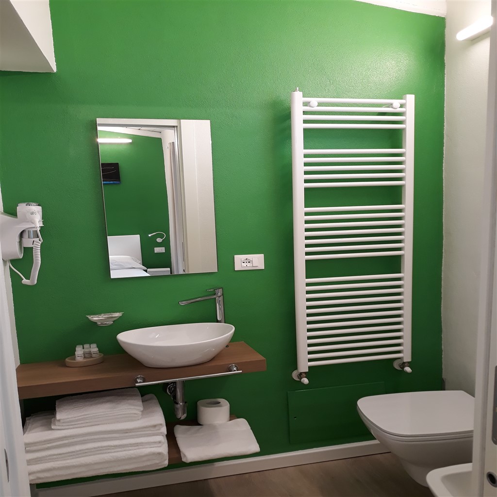 L'Appartamento Green, è formato da una camera doppia utilizzabile come Matrimoniale o con 2 letti Singoli,  con bagno privato e doccia 90x90.